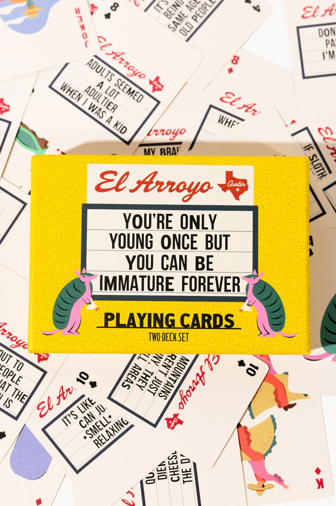 Game night just got a whole lot more fun with El Arroyo playing cards! Our Happy Hour Deck features two sets of cards with 36 different marquee signs each that will certainly make any game a lot more interesting.