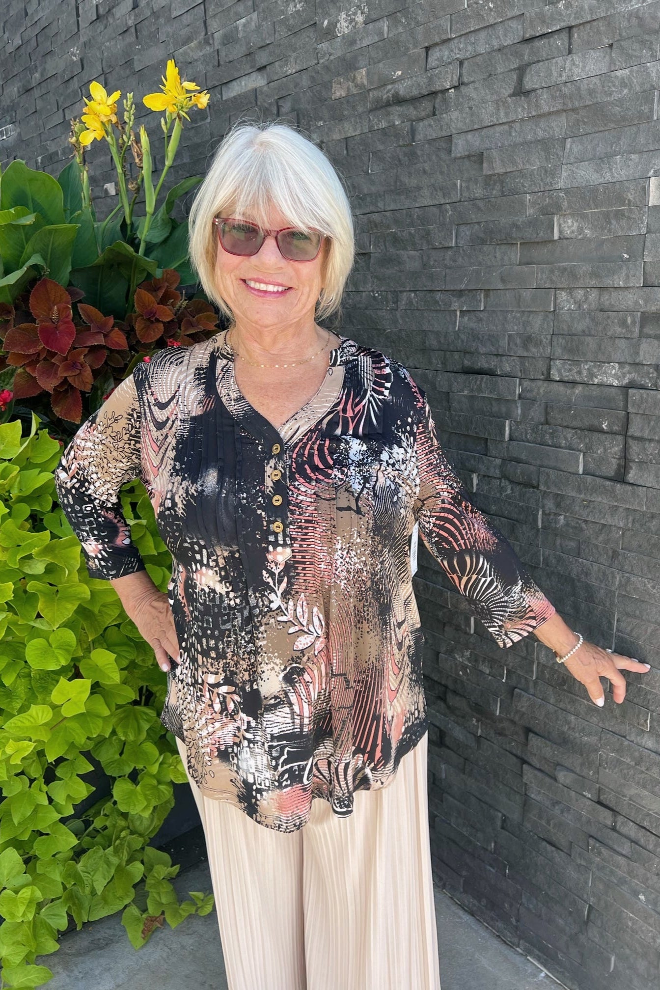 Expedition Quarter Sleeve Top - Coral/Brown