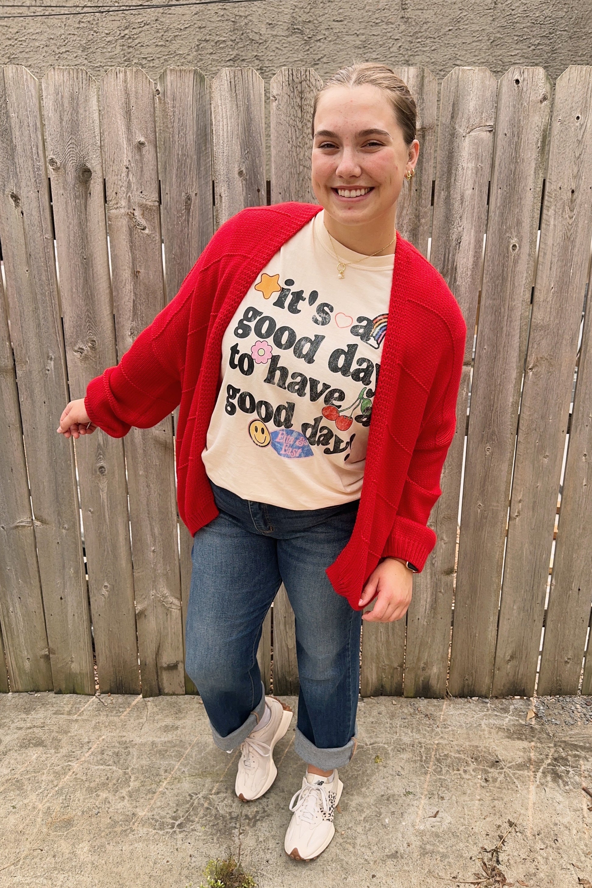 Start your day right with the Good Day to Have a Good Day Graphic Tee. This comfortable and stylish shirt spreads positivity wherever you go, making it the perfect reminder to embrace optimism and joy. Crafted for all-day wear, it’s an ideal choice to boost your mood and inspire those around you. Make every day a good day with this uplifting graphic tee.