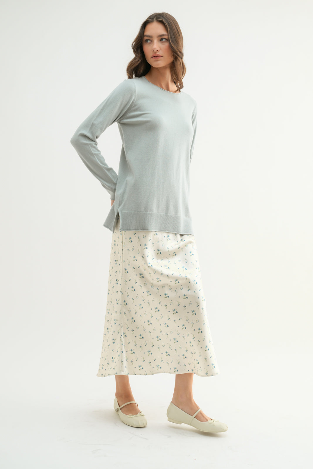 Stay comfortable and stylish in the Mint Boat Neck Sweater, crafted from breathable cooling material that keeps you fresh all day. Its elegant boat neck design pairs perfectly with side slits for added movement and a flattering fit. Ideal for layering or wearing on its own, this sweater combines comfort and chic effortlessly.
