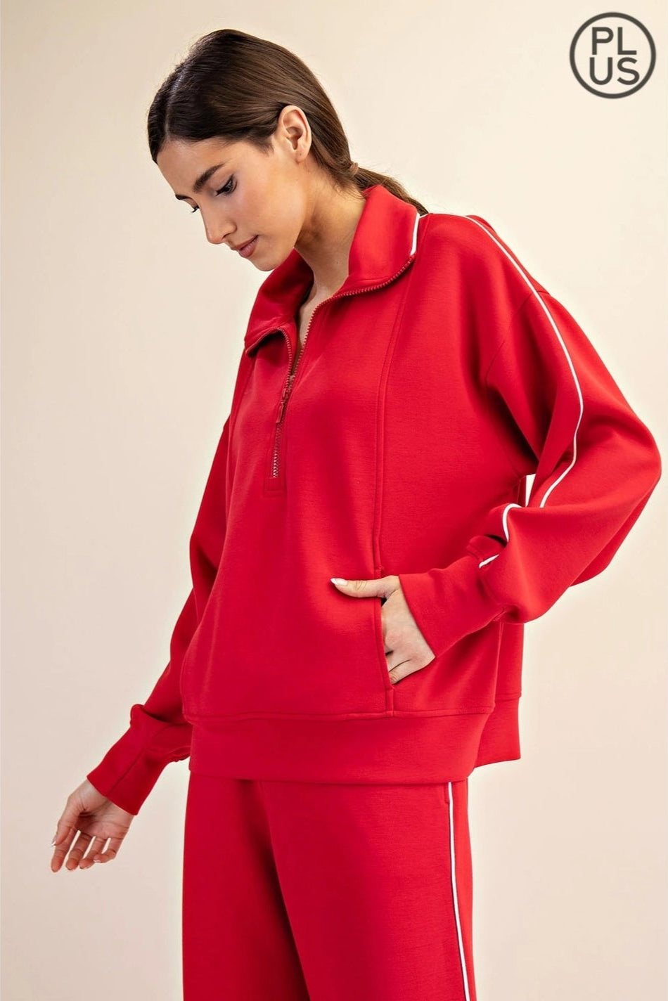 Achieve a luxurious yet sporty look with this quarter-zip pullover, made from silky smooth and lightweight cooling fabric. Featuring seaming and piping details, it's the perfect balance of comfort and style.